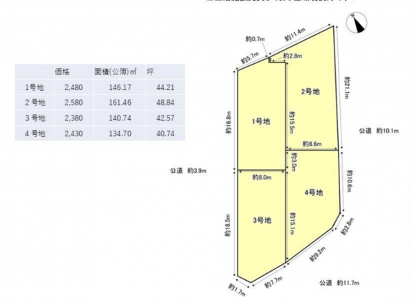 西側 公道3.9m 間口約18.5m