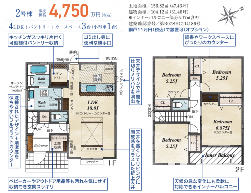土間収納・パントリーなど便利な収納が充実! 駐車場3台分あり!