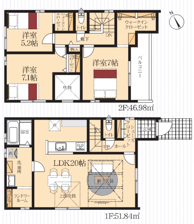 - システムキッチン、カウンターキッチン、IHクッキングヒーター、食器洗浄乾燥機、シャンプードレッサー、浴室乾燥機、モニタ付インターホン、洗浄便座、ウォークインクローゼット、追い焚き、駐車場2台分、トイレ2箇所