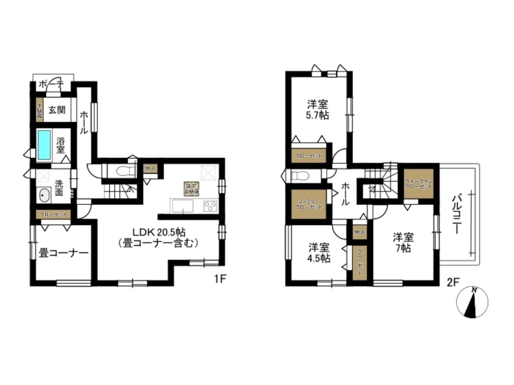 - システムキッチン、浴室乾燥機、洗浄便座、ウォークインクローゼット、複層ガラス、駐車場2台分、駐車場3台分、床下収納、トイレ2箇所