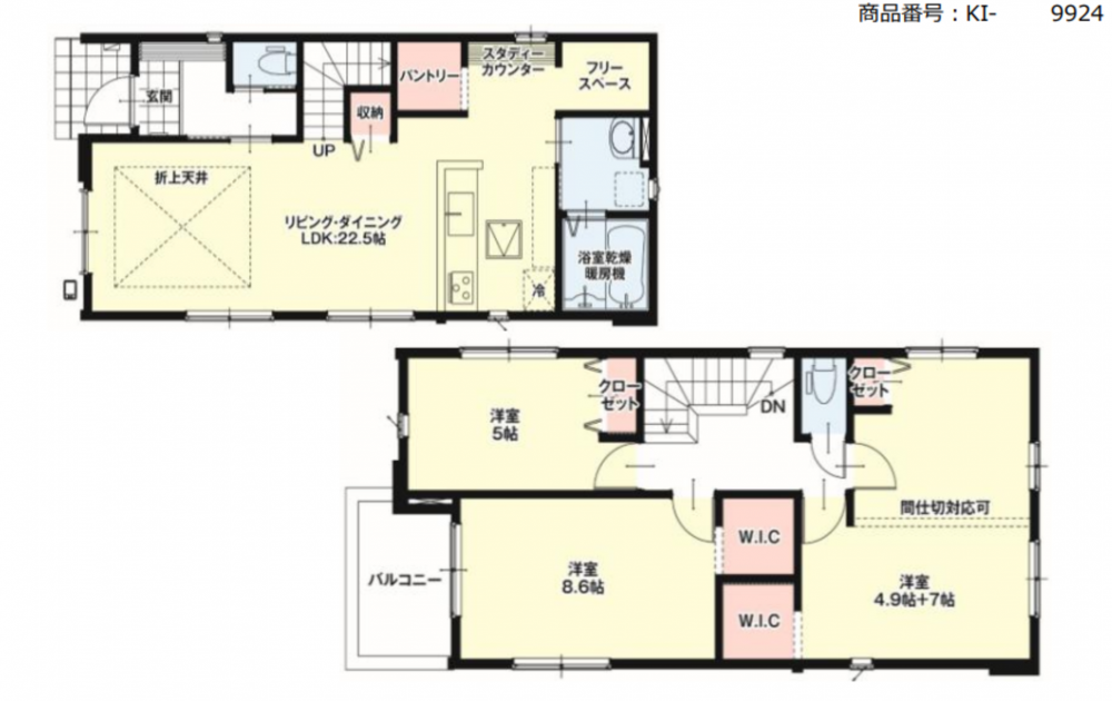 - カウンターキッチン、ウォークインクローゼット、駐車場2台分、トイレ2箇所