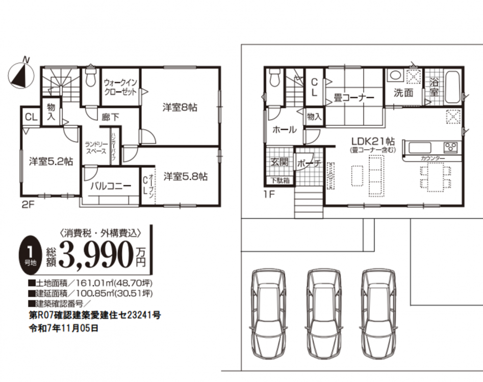 駐車3台可能!新築3LDK!