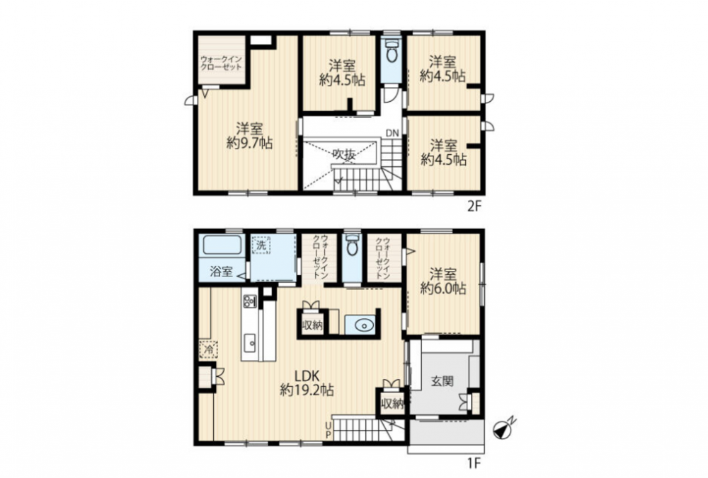 - システムキッチン、カウンターキッチン、IHクッキングヒーター、食器洗浄乾燥機、洗浄便座、ウォークインクローゼット、追い焚き、駐車場2台分、トイレ2箇所
