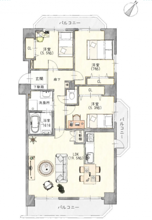 水回り・内装リフォーム済み!角部屋で二面バルコニーのため日当たり良好です!